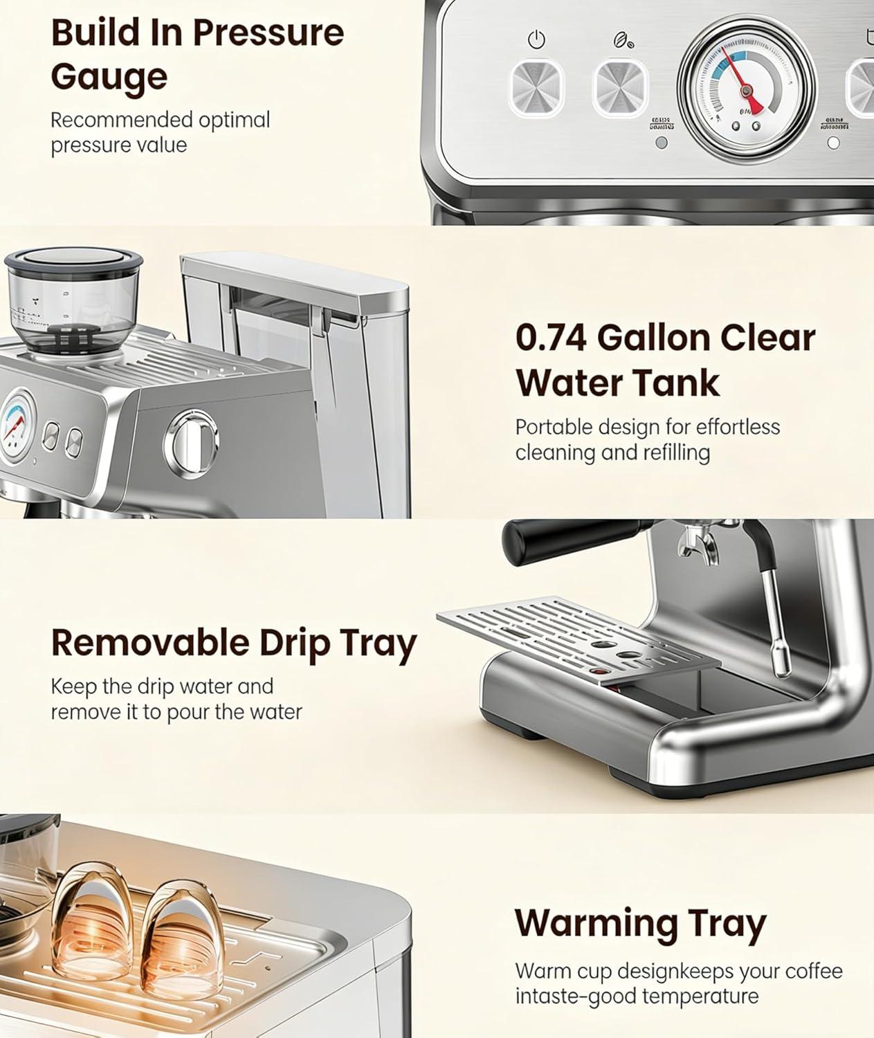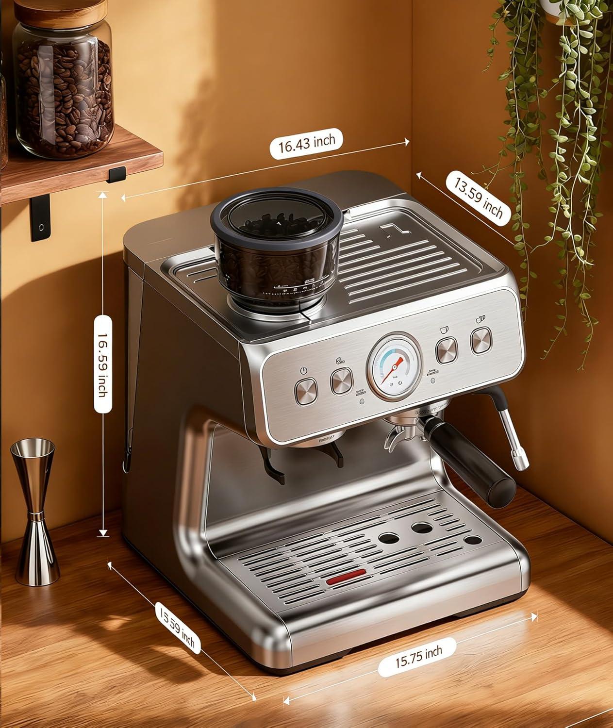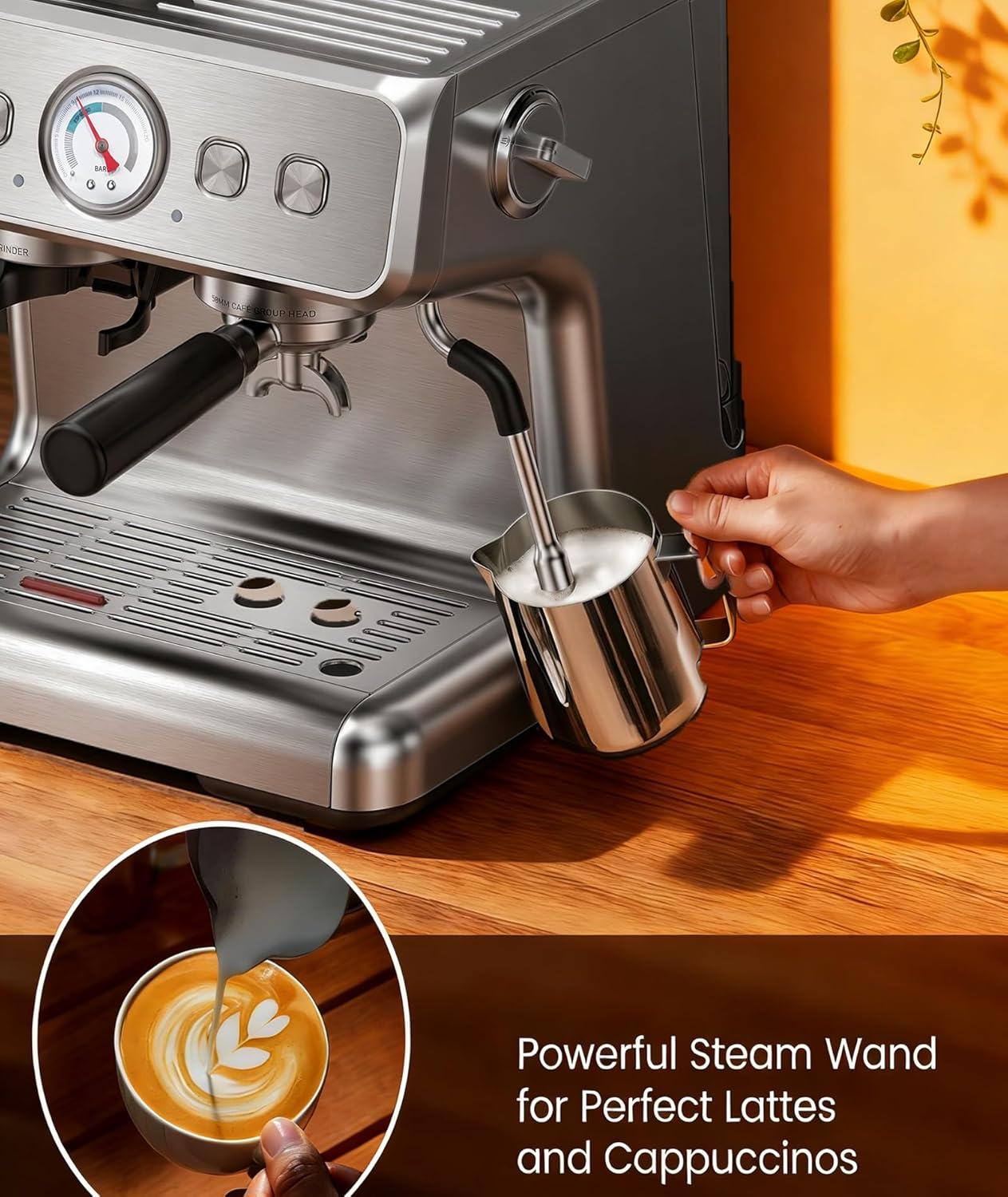 image:image20 Bar Espresso Machine with Grinder amp Milk Frother Steam Wand 58mm Stainless Steel Coffee Maker Expresso Coffee machines for Home and Caf Use Perfect for Cappuccino and LatteStainless SteelSingle Boiler