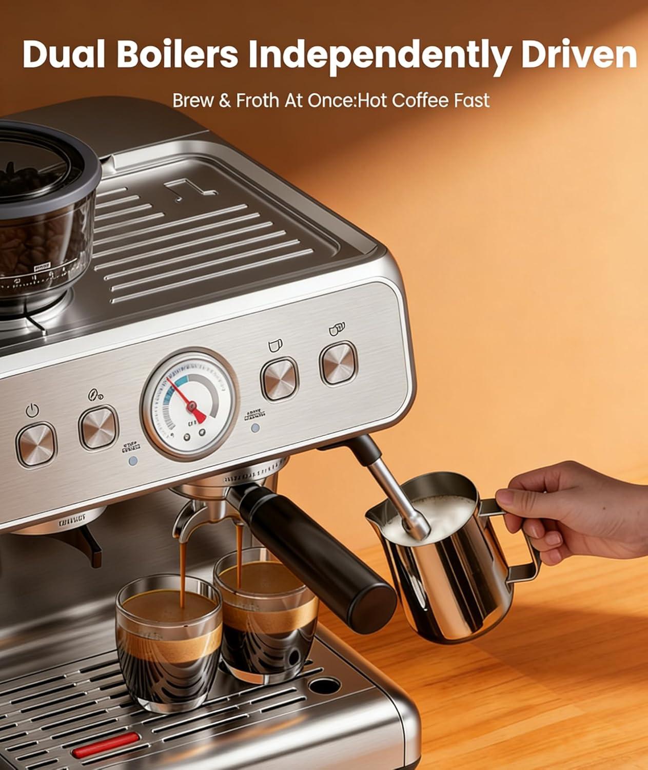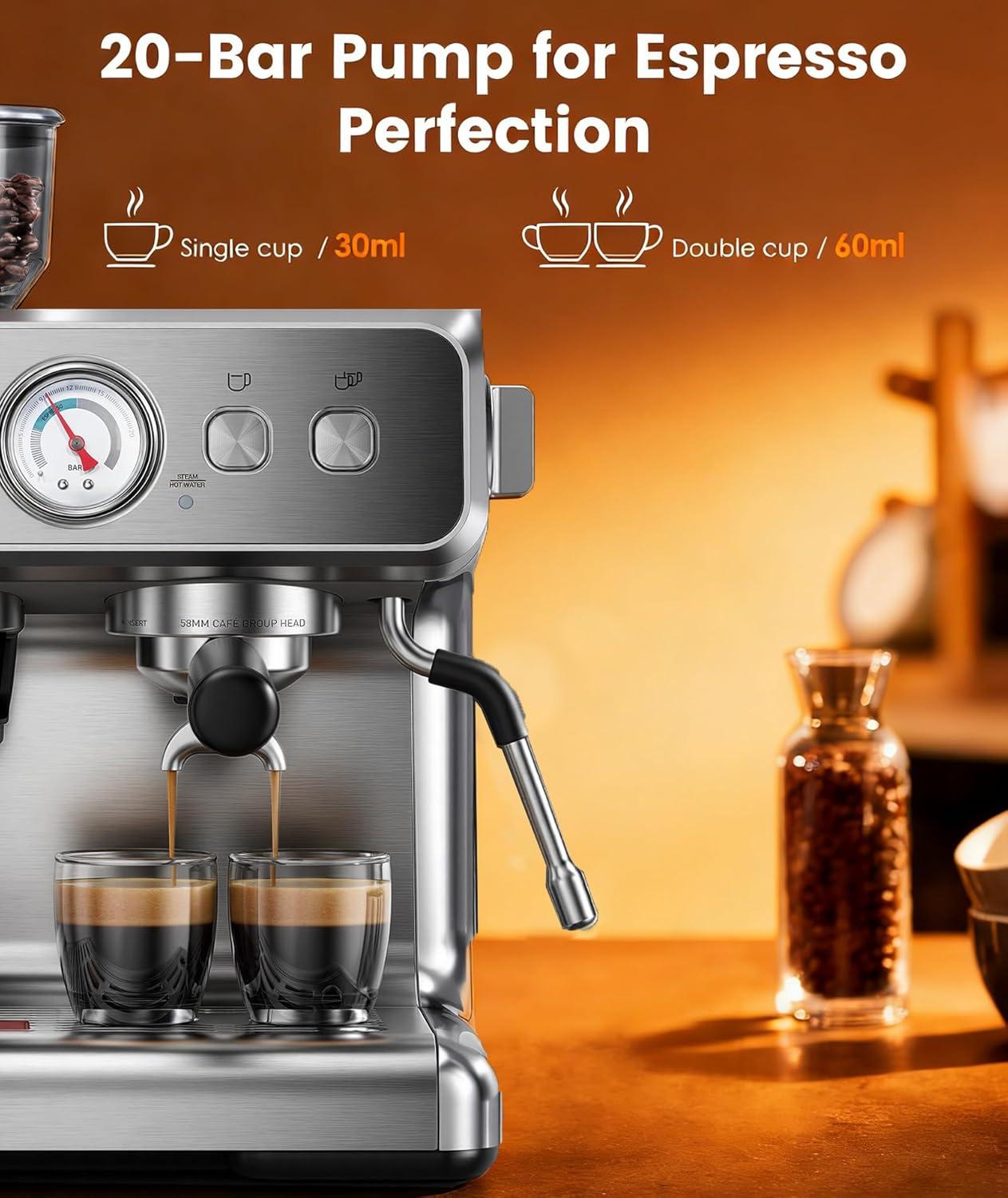 image:image20 Bar Espresso Machine with Grinder amp Milk Frother Steam Wand 58mm Stainless Steel Coffee Maker Expresso Coffee machines for Home and Caf Use Perfect for Cappuccino and LatteStainless SteelDual Boiler