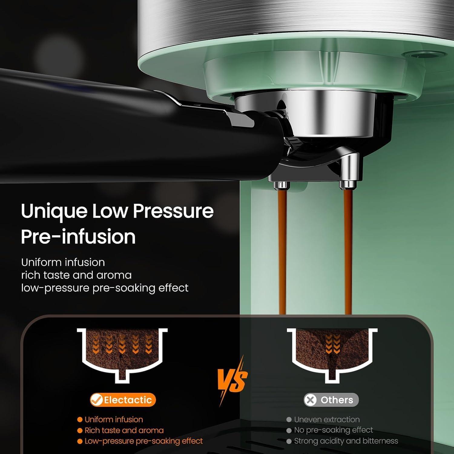 20 Bar Espresso Machine,Semi-Automatic Espresso Machine with Milk Frother Steam Wand,Coffee Maker Machine with 40 oz Removable Water Tank for Latte &Cappuccino(Black)(Green)