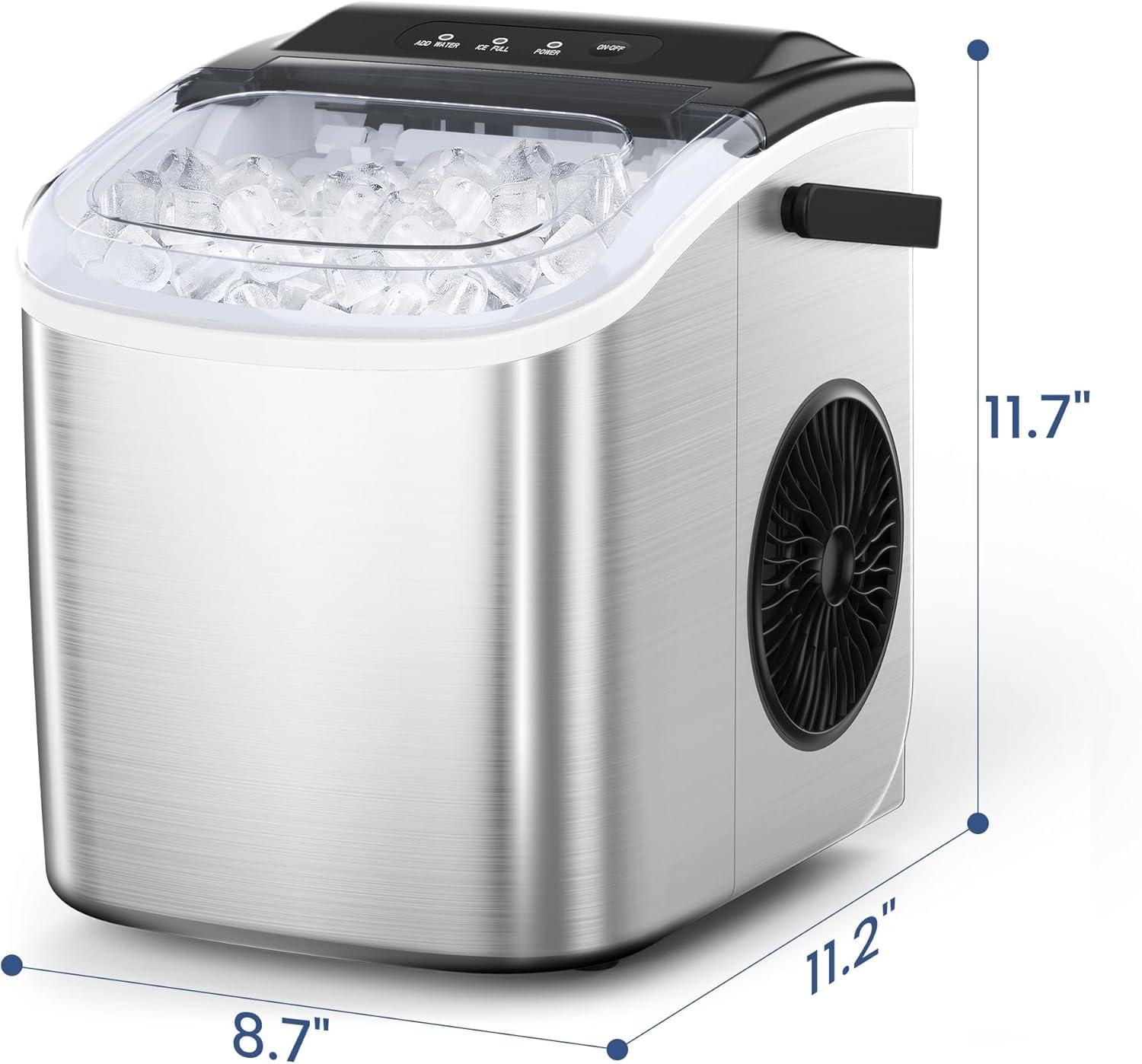 9 Cubes Ready in 6-8 Mins Countertop Ice Maker, 26.5Lbs per Day Stainless Steel Portable Ice Maker, Ice Maker Machine with Carry Handle, for Home/Kitchen/Camping/RV(SILVER)