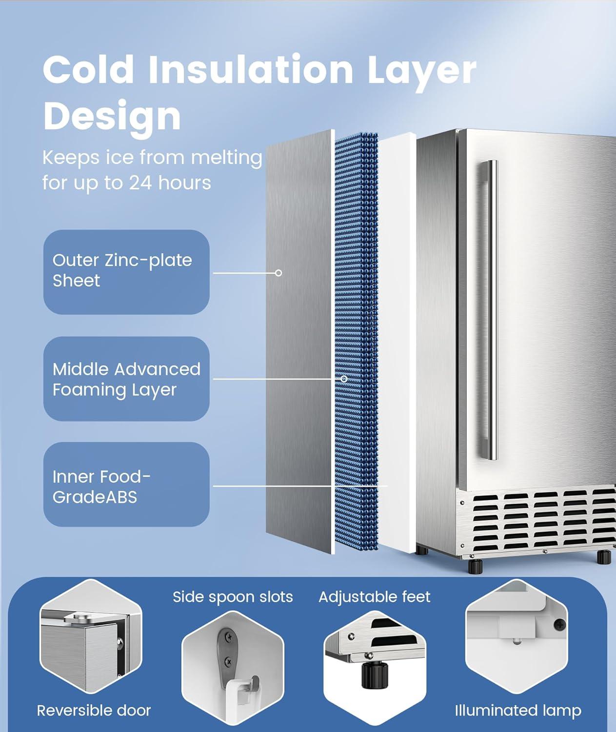 40 dB Bass Operation: Our ice maker not only has excellent cooling effect, but also has normal noise below 40 dB, ensuring you can enjoy the fun of ice making in a comfortable and quiet environment, just like using a refrigerator.