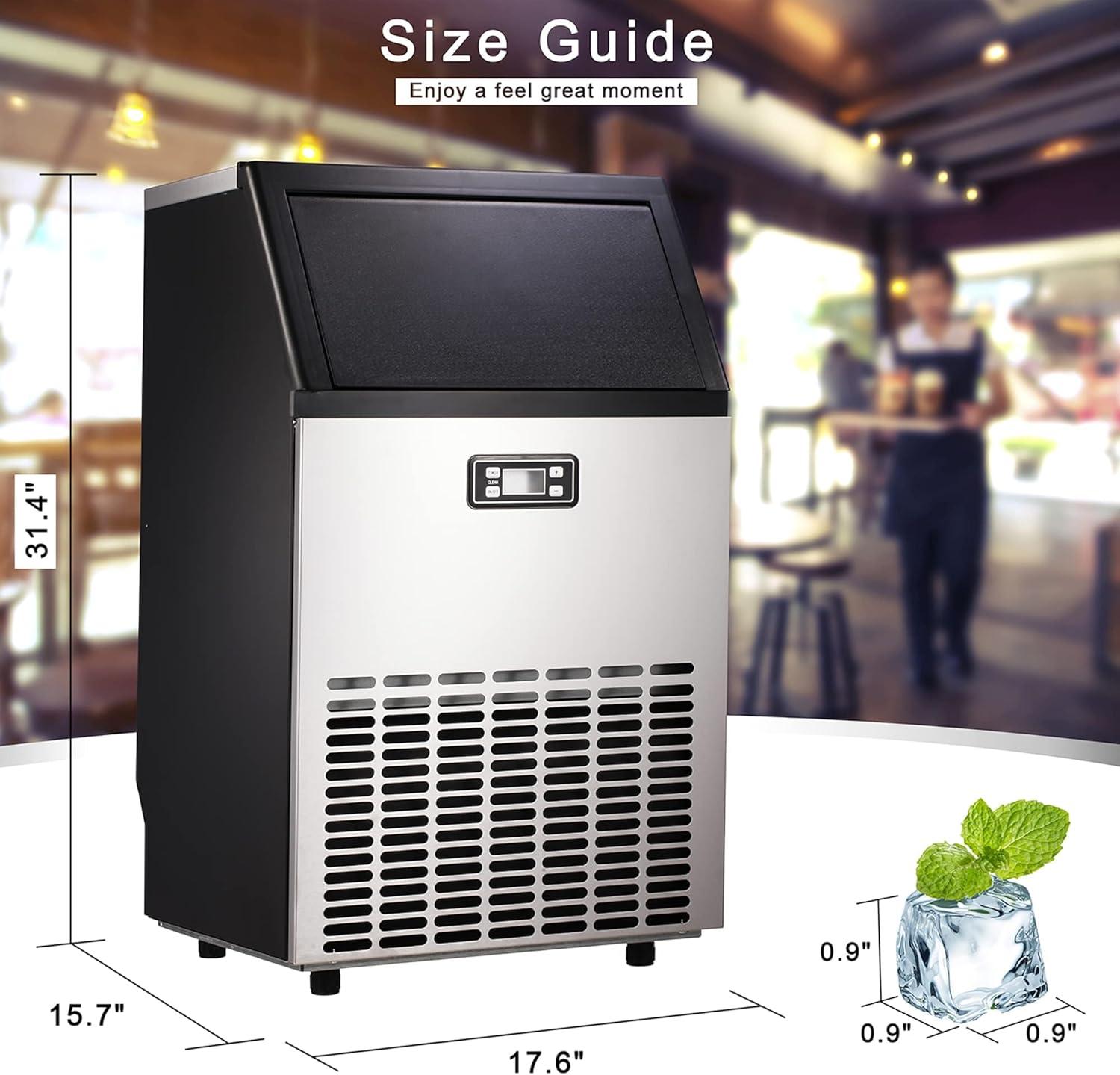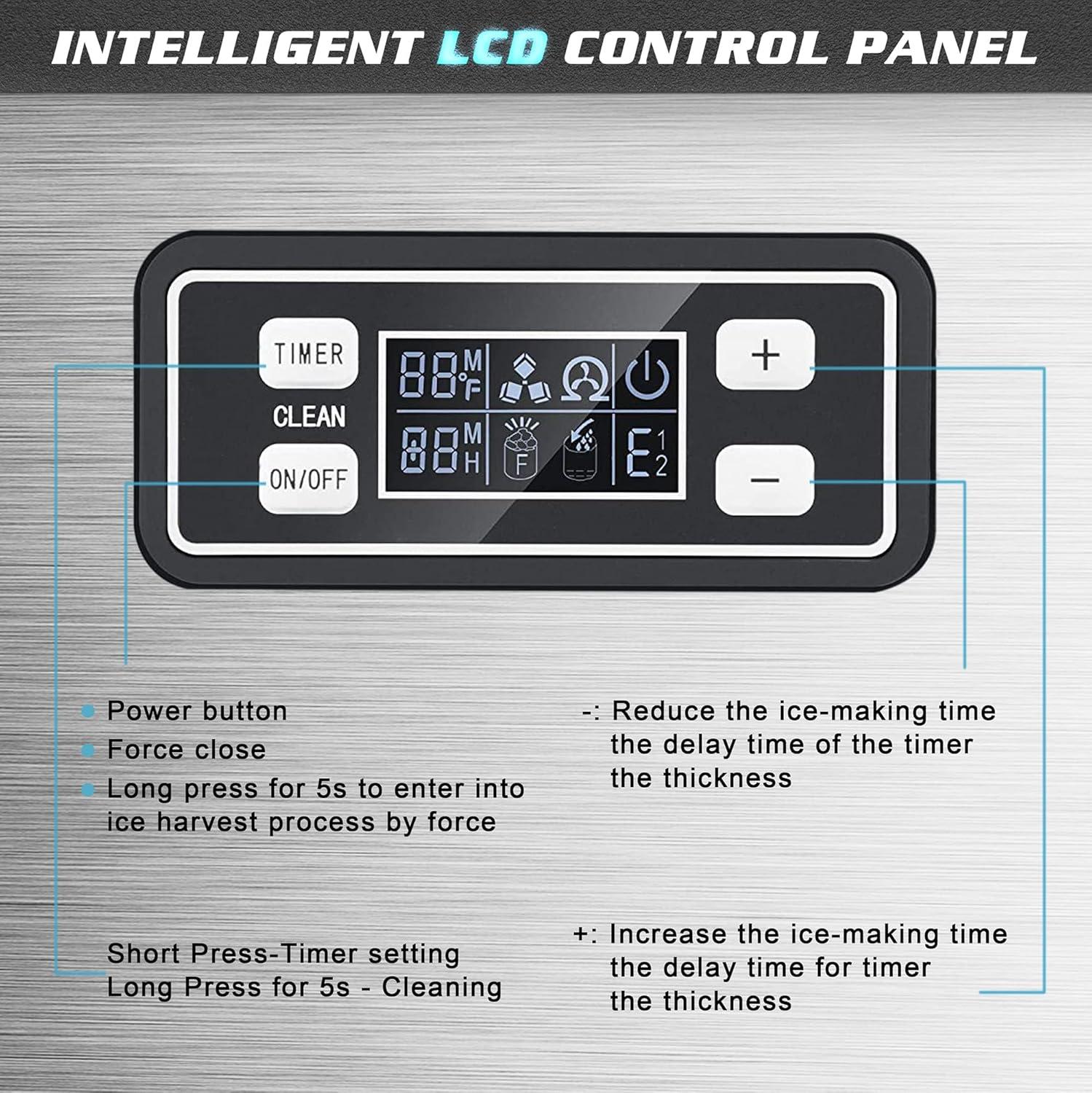 100lbs/24H Stainless Steel Ice Machine with 33lbs Storage Capacity, Auto Self-Cleaning, LED Digital Display, 45 Ice Cubes in 12 Mins,Home/Bar/Restaurant