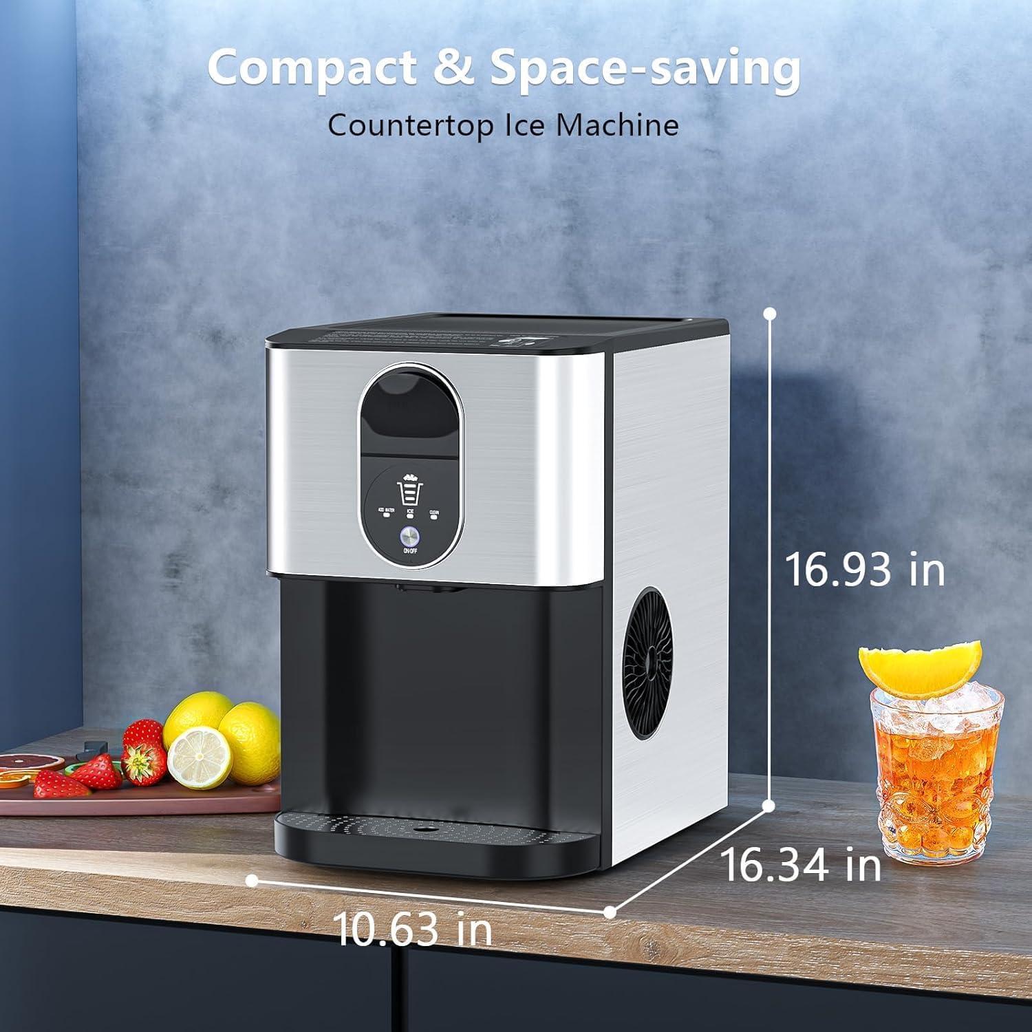 【Compact & Space-Saving】Our nugget ice machine countertop has compact dimensions, This portable ice maker blends seamlessly into any kitchen, office, or bar setup, so you can enjoy ice on the go.