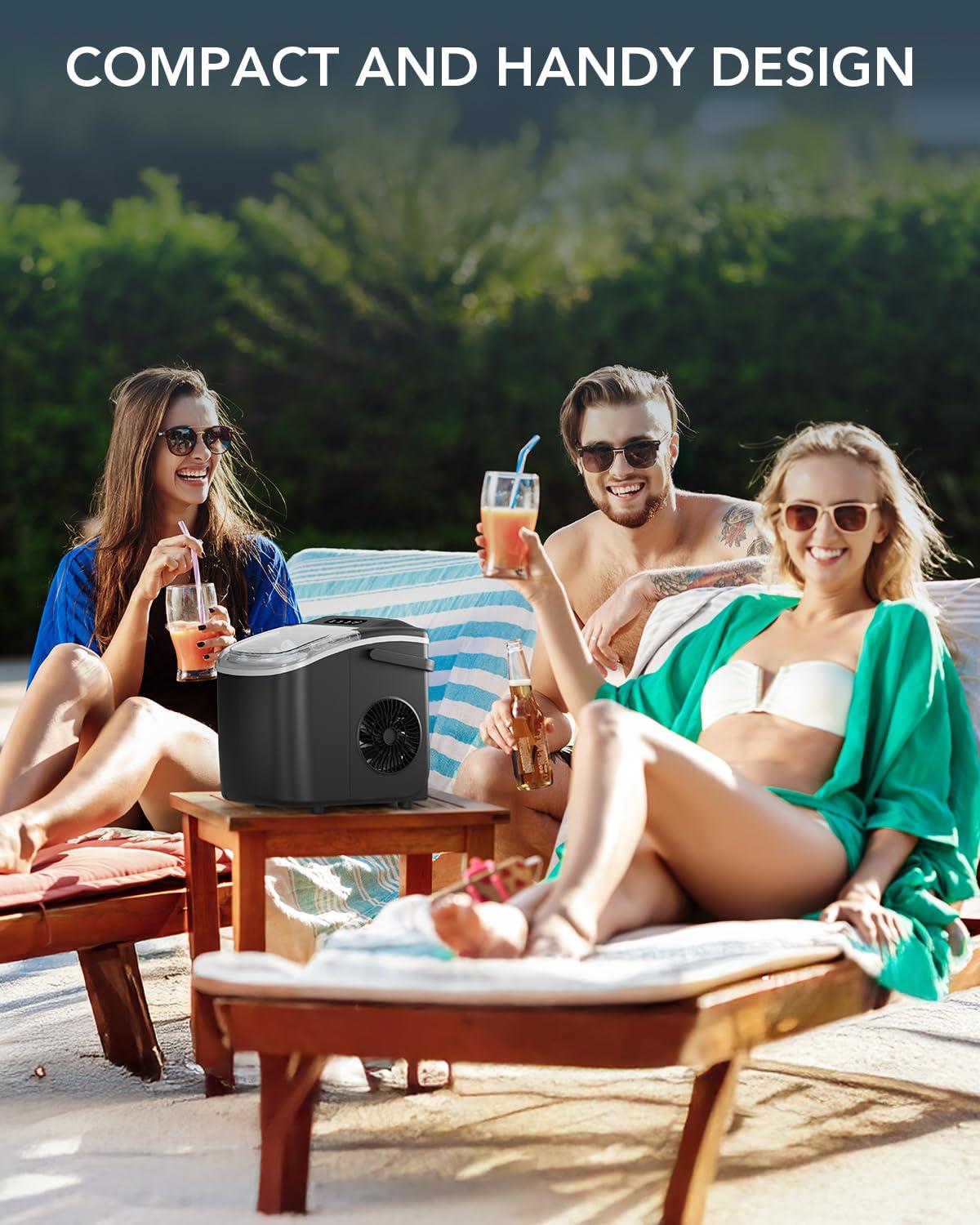 Ice Maker Countertop, Efficient Easy Carry Ice Machine, Self-Cleaning Ice Maker with Ice Scoop & Basket, 9pcs/ 8mins 26.6Lbs Per Day for Home/Office/Kitchen,Green(BLACK)
