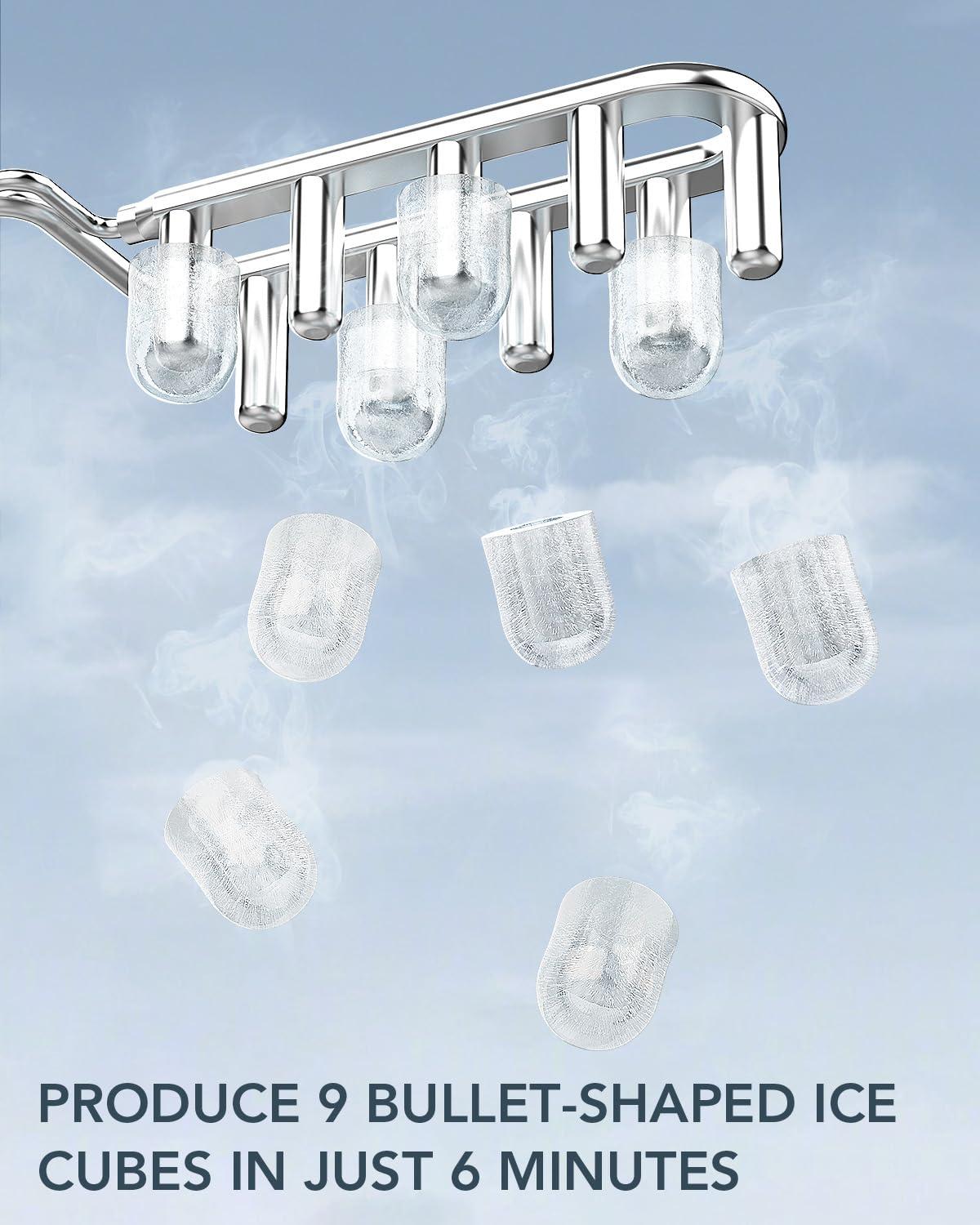 High Efficient: Our product has higher ice efficiency than most ice maker on the market. This maker can produce 10 pieces of ice in at least 10 minutes in different environment; because sometimes the surrounding ambient temperature will affect the ice efficiency of the ice maker.