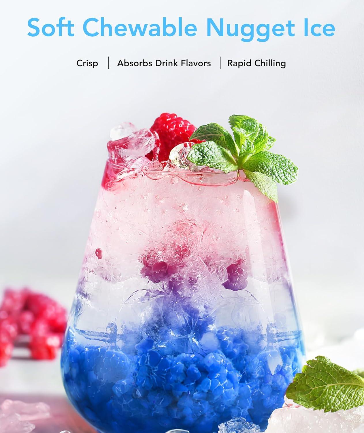 Superior Nugget Ice Experience: This ice maker nugget produces soft, crunchy, slow-melting ice that preserves drink flavors without dilution—perfect for cocktails, sodas, and slushies. Avoids watered-down drinks and delivers café-style ice quality at home