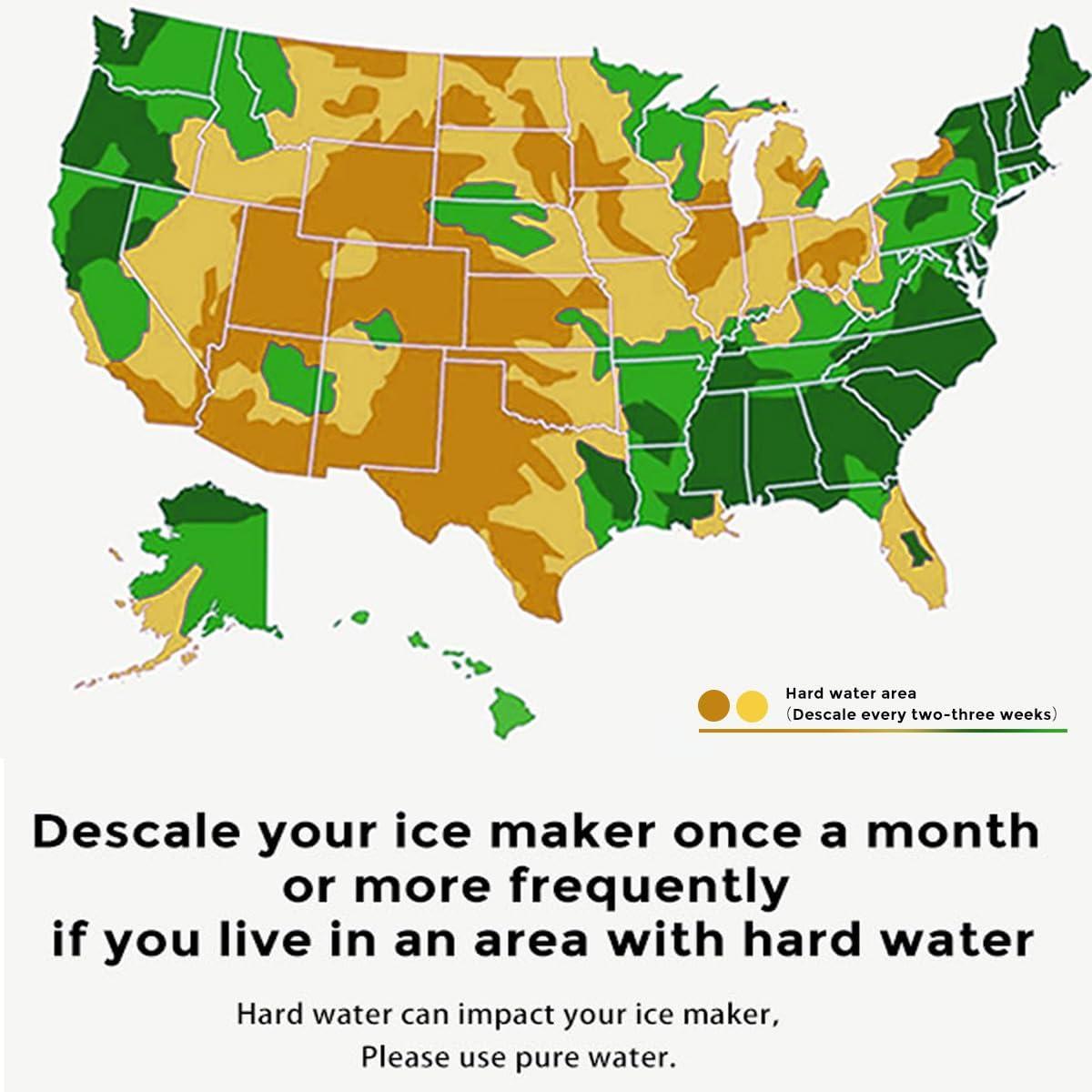 【Easy To Use】With just one button, this countertop ice maker is easy to use and control. Fill the ice maker with water, press the 'ICE/CLEAN' button and that's it. The “ADD WATER” or “ice FULL” indicator lights when the ice maker is short of water or full of ice.