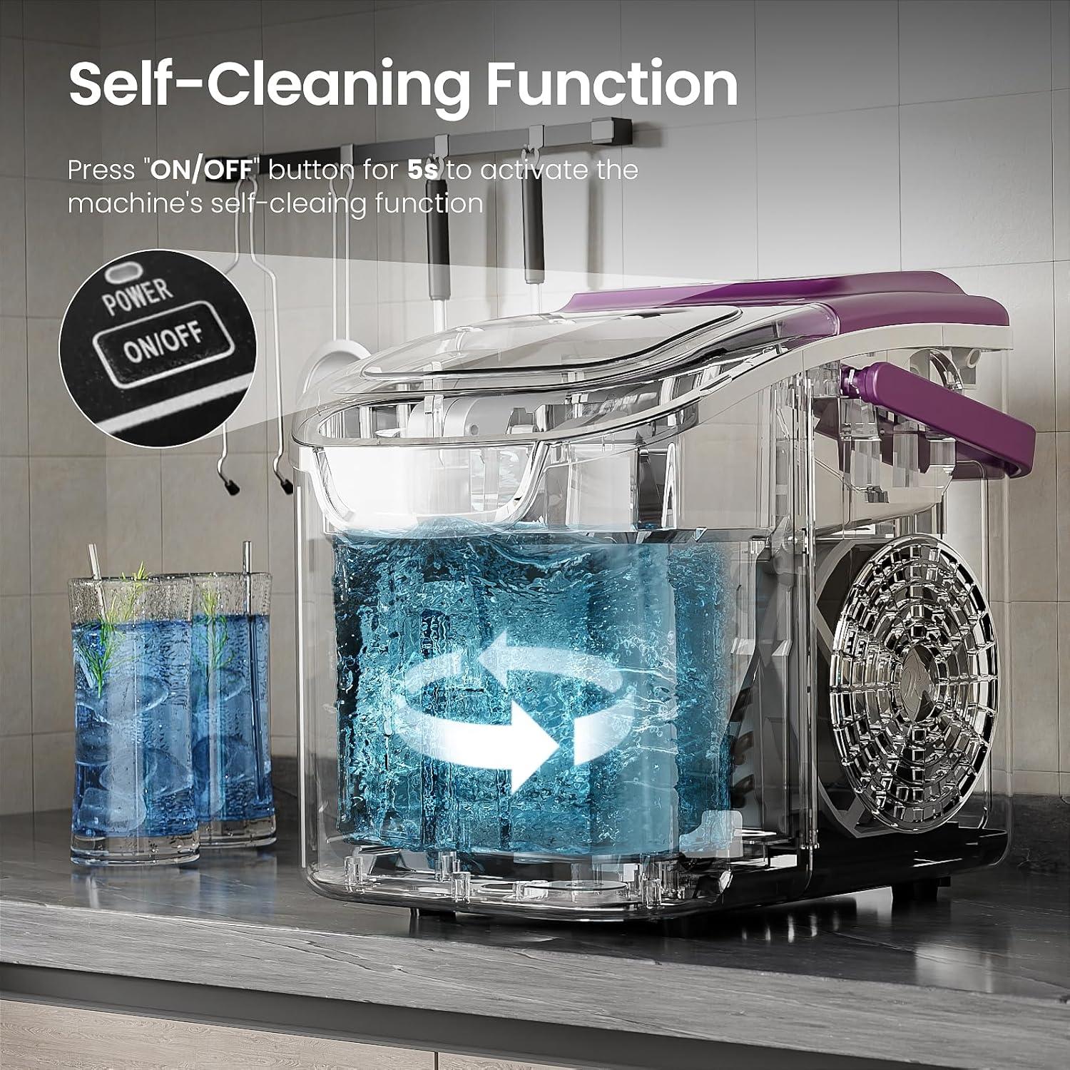 One-Touch Self-Cleaning: Ice machine say goodbye to stale-tasting ice. Activate the automatic cleaning mode with one long press to ensure clean, odor-free cubes. It is recommended to clean your machine once a month.