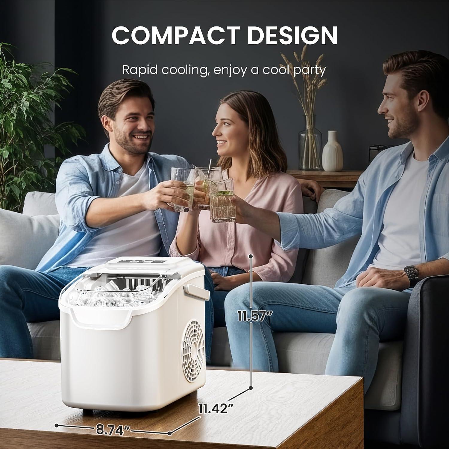 Compact & Travel-Friendly: Small ice maker take it anywhere with ease – compact 8.6″x10.4″x11.2″ size and built-in handle make it ideal for RVs, camping trips, picnics, or small kitchens. Weighs just 11.7 lbs for effortless portability.