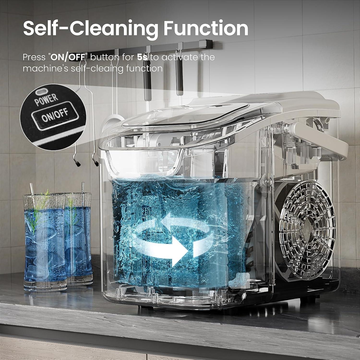 One-Touch Self-Cleaning: Ice machine say goodbye to stale-tasting ice. Activate the automatic cleaning mode with one long press to ensure clean, odor-free cubes. It is recommended to clean your machine once a month.