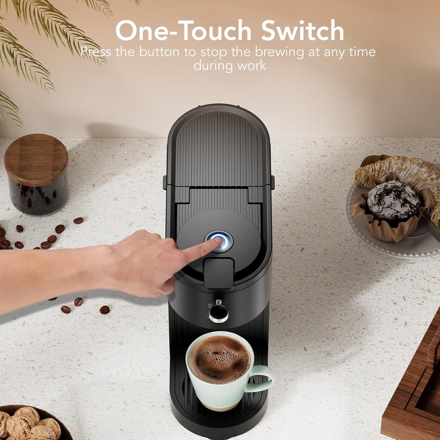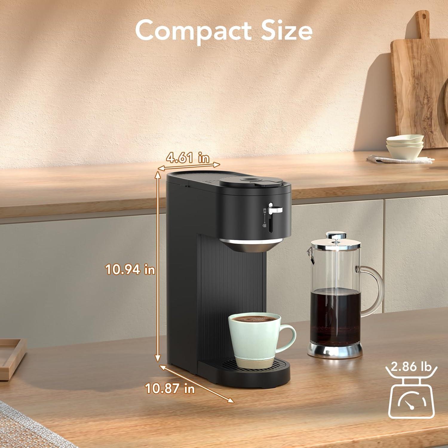 Experience ultimate convenience with the Electactic Single Serve Coffee Maker. Brew both K-Cups and ground coffee effortlessly, perfect for varied coffee preferences. Its compact design fits perfectly in any kitchen or office, making it ideal for tight spaces.