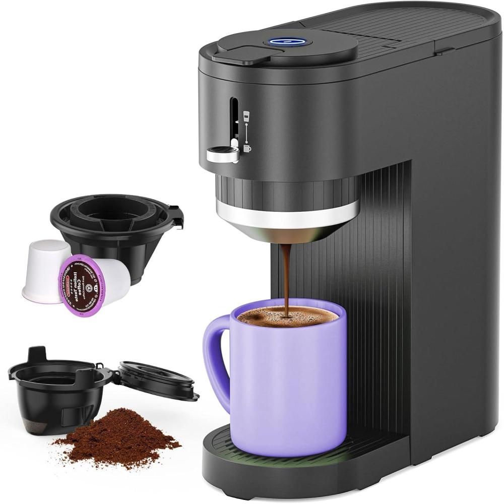 Experience ultimate convenience with the Electactic Single Serve Coffee Maker. Brew both K-Cups and ground coffee effortlessly, perfect for varied coffee preferences. Its compact design fits perfectly in any kitchen or office, making it ideal for tight spaces.